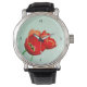 At stylish timepiece is always a classic gift. Design feature soft red tulip blossoms against a mint green background.