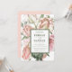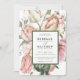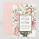 This beautiful spring bouquet floral wedding invitation features a large pink tulip watercolor bouquet. All the wedding details are in olive green with an olive green border. The back has a blush pink background. You can customise this wedding invitation with all your important details on the front by clicking "personalise this template. This invitation coordinates with the other products in the Spring Watercolor Bouquet Wedding Collection.