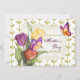 Pretty orange, yellow and purple tulips with butterflies over floral leaf pattern background. This lovely Mother's Day Brunch invitation has matching back design. All text on front and back is ready for you to customise with your event information.