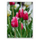 A passing storm deposits snow on three pink tulips. Note that this card may be customised with your own personal inscription.