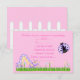 pretty pink garden rsvp for birthday party or celebration. Purple Ladybird and catepillar in the garden