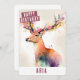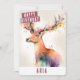 A cute birthday card featuring a flowery deer celebrating spring on the front with "Happy Birthday" in a white, all-caps bold font. Personalise the front by adding your name(s). The back of the card features space for your typed or handwritten message.