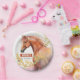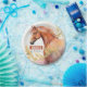 Cute birthday party paper plate featuring a horse celebrating spring. Customise this product by adding your party information.