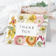 A bright and cheerful thank you card with lovely feminine spring floral blossoms in yellow, orange, pink and white. The card is intentionally left blank on the inside for you to write or enter your own desired message of thanks. This card coordinates with a spring floral bridal shower collection and may also be used for other occasions as well.