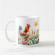 Mug featuring a watercolor Hen in a spring landscape. Customisable.