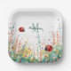 Spring Watercolor ladybug Floral Monogram Wildflow Paper Plate