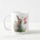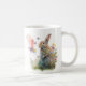 Spring vibes mug featuring a watercolor rabbit among flowers. Customisable.