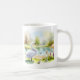 Mug featuring a watercolor Swan in a spring landscape. Customisable.