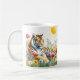 Mug featuring a watercolor Tiger in a spring landscape. Customisable.