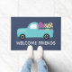 This spring welcome mat is perfect for spring decor. Designed by Aesthetic Journeys, it features an adorable truck with eggs graphics and your own personalisation. Use the template to change the message "customise it button" to change colours and fonts.