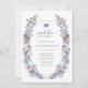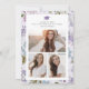 Spring Wildflower Graduation Invitation. Make your high school or college graduation announcement stand out with this elegant, modern rustic invitation featuring a delicate lilac wreath in watercolor hues of soft purples, lavender roses, and blue wildflowers with lush greenery. A perfect choice for spring and summer graduations, personalise with three photos on the back and customise every detail from the wording, font styles, colours, and sizes for a beautifully refined celebration.