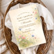 A soft watercolor meadow blooms across the bottom of this elegant design, featuring delicate daisies, blush cosmos, buttery yellow florals, and airy blue wildflowers. The warm ivory background and refined gold typography create a graceful balance between rustic charm and timeless sophistication. Inspired by sunlit fields and gentle summer breezes, this design feels romantic, fresh, and effortlessly classic. Perfect for a garden-inspired celebration with a refined, storybook touch.