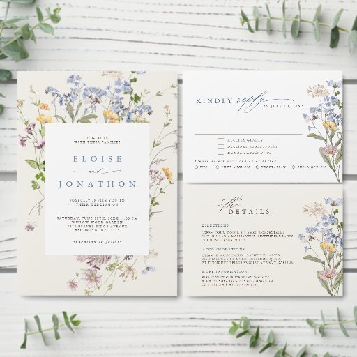 Spring Wildflower Meadow Garden Details Wedding Invitation