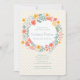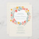 A charming floral wreath of spring flowers against a beige polka dot background. Featured here as a Baby Shower Invitation, you can use it as a thank you card, or as an invitation to a celebration. Want to save money? Print this design on the basic, square corner paper.