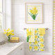 Welcome your family and guests to your bathroom with this cheerful yellow daffodils flower print towel set. . This bathroom set features a graphically designed bouquet of daffodils on the hand towel, an all-over floral print on the bath towel, and solid yellow on the washcloth. Accent the decor of your bathroom with this cheerful yellow flower towels set during the spring season. Would be lovely for Easter or Mother's Day.