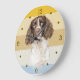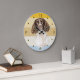A portrait of a beautiful Springer Spaniel Dog is the feature on this clock. The image is placed on a retro, slightly distressed striped sunset background. Dark gold numbers and diamond shaped markers around the perimeter make the clock easy to read. Perfect for anyone who has lost their heart to a Spaniel.