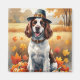Springer Spaniel In Autumn Leaves Thanksgiving Art Magnet