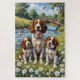 A lively Springer Spaniel family scene set in a bright riverside meadow. Featuring a joyful adult dog and two adorable puppies, this artwork captures movement, nature, and playful charm—perfect for dog lovers and cheerful decor.