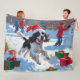 Springer Spaniel Running Snow with Christmas Hat Fleece Blanket