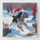 Springer Spaniel Running Snow with Christmas Hat Square Wall Clock