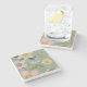 The coasters are gorgeous, a quality feel and heavy weight. They look like a precious archeological find. A rustic stone juxtaposed with a modern floral black and white print. I like the way the print goes slightly imperfect on the cut stone edges giving them a kind-of natural beauty.