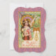 This elegant Art Nouveau postcard announces the arrival of springtime. It’s a luscious display of colour, patterns and flowers. A young woman touches a flowering tree branch amid stylised brackets, borders and pendants. The original image has been combined with a patterned background to compliment the colours and design of the vintage postcard. An area for text allows for personalisation.