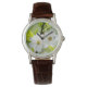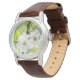 I like the illustrative watch with the lady on it. It is a great reminder that I am blessed and it has a very sturdy leather band. The colors are true and vibrant. Love the color of the Leather also. Very nice.
