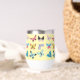 The bottle looks even better in real life. The ice cubes I put in lasts all day! I have my bottle with me all the time. It's summer and having something cold to drink feels amazing. With this bottle I always have something super cold. I have only tried the hot drink once and it lasted a long time as well. The color blue is a navy blue and the white printed on it is vibrant. It printed perfectly. I love my personalized smile water bottle.