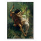 Springtime (Primavera) by Pierre Auguste Cot, oil on canvas 1873, is a French classical academic painting of two young people sitting in a swing in a sunny, spring forest landscape. Cot paints a sentimental image of flowering first love between a young man and woman which combines both modern realism and inspiration from classical antiquity, as in the girl’s gaze at her love and in the carefully modelled drapery. The smooth, academic realist technique captures effects of light and shadow that border on the photorealistic, tempered by the gentle curves of classical drawing. Springtime was commissioned as a type of companion piece to Cot’s other large painting of young lovers, The Storm, both of which became enormously famous in Europe and America.