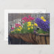 Postcard features an original photograph of a window box of colourful flowers planted in early spring in Greeley Square in midtown Manhattan, New York City.
