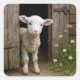 Springtime Lamb Standing In Barn Doorway Square Sticker