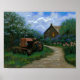 Spring has come to the farm and the old tractor rests after ploughing the fields. Print of a painting
