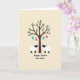 This card features a stylized tree with an earthy brown trunk and thin branches reaching upward, dotted with a few fresh green leaves that hint at early spring. From the branches hang four egg-shaped ornaments in alternating soft pink and light blue, adding a gentle Easter touch 🌷. Beneath the tree stand two fluffy sheep with cloud-like white wool, simple black faces, tiny dark eyes, and slender black legs. They face inward from either side of the trunk, as if sharing a quiet moment together, their calm expressions and balanced stance suggesting an easy friendship. The background stays a smooth creamy beige, keeping the focus on the tree and the pair. A short line of text sits near the bottom in a dark, easy-to-read color, spaced neatly below the scene like a small caption. The eggs are evenly spaced along the branches, with the pink and blue tones alternating above the two sheep 🐰.