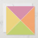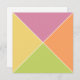 Colourful flat greeting card using pastel lemon, raspberry pink, lime green and orange in an argyle pattern.