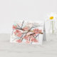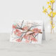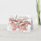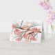 Spring greetings decorated with branches of Sakura style cherry blossoms hand painted in warm shades of pink with umber, grey branches and touches of turquoise in the sky accented with spatter spots and paint puddles. The inside has a faded version of the artwork with text that you can edit to fit your needs.