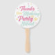 Unique, fun, colourful sprinkle chocolate doughnut party themed kids birthday party hand fan designed to look like a doughnut treat on a popsicle stick. Designed in fun colourful pink, yellow and teal with a confetti, sprinkles and polka dot design pattern. The back of the doughnut hand fan features a unique typographic message "Thanks for Making My Party So Sweet!" Add uniqueness to your little ones birthday celebration with this unique doughnut birthday party popsicle hand fan design. We have a wide selection of matching birthday items for this ice cream parlour doughnut birthday party theme.