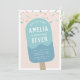 Chill out with these cute popsicle themed party invitations for your little one's summer birthday party. Fun summer design features a blue and aqua ice cream pop illustration on a blush background dotted with sprinkles. Personalise with your party details in white lettering.