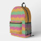 Personalise this rainbow sherbet ice cream backpack with a name. Inside the artwork are two other waffle colours or make the pattern bigger or smaller on the backpack. This backpack has a rainbow sherbet ice cream with sprinkles background with scalloped waffle cone edges.