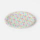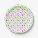 Sprinkles in pink, yellow, green, purple and blue. Custom paper party plates. Colourful baby shower decor idea.