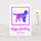 Sprocker Spaniel dog silhouette in crazy hot pink and blue bright modern abstract pattern. Funny birthday message inside can be changed to anything you want. Personalize with name on the front.