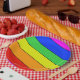 Spunky Rainbow stripes in primary colours Paper Plate