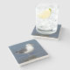 The coasters are gorgeous, a quality feel and heavy weight. They look like a precious archeological find. A rustic stone juxtaposed with a modern floral black and white print. I like the way the print goes slightly imperfect on the cut stone edges giving them a kind-of natural beauty.