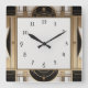 "art deco clock", "art nouveau clock", "black white cream gold", "1920s geometric symmetrical lines", "stylish sophisticated 1920 style", "smart faux golden luxury", "retro vintage luxurious antique", "elegant line semicircle arches", "glamourous glam square clock", "classy classic arch glamour"