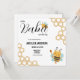 Square "A little Babee is on the way" Baby Shower invitation. Honeycombs, mother bumblebee and a sleeping baby bublebee are designelements together with the customisable text - and together forming this cute Baby Shower Invitation. The back has a small bee on a yellow heart down in the corner. The colour palette on this card and collection makes it gender neutral and versatile.