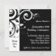Bold and striking modern contemporary black and white party invitations for 40th birthday party or any birthday year. Black with white accents, fancy vines swirl design. Customise online with your event details.
