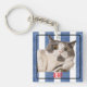 Square Blue Red White Nautical Stripes Pet Acrylic Key Ring