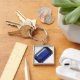 Square Blue Sapphire Keychain with image of a Rectangular Blue Sapphire