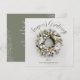 Square business holiday greeting cards feature a beautiful snow flocked pine wreath decorated with white and gold Christmas tree ornaments and flowers on the front along with a greeting and company name. Personalised message on the back on a green background. ***SQUARE SIZE REQUIRES EXTRA POSTAGE - mail in 5" x 7" envelope for regular rate postage. Be sure to double-check your order before adding it to your cart as what you see on the screen is what will be printed. The Live Design Service can help you with your design layout if needed.