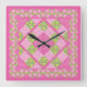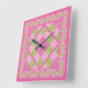 Square Clock: Pink: Primroses, Polka Dots, Gingham Wall Clock