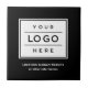 Square custom branded tile features your professional business logo design and custom text for a location, slogan. website, or other information. Simply add your company logo to the black and white placeholder image and type in your preferred wording. Colours can be modified.